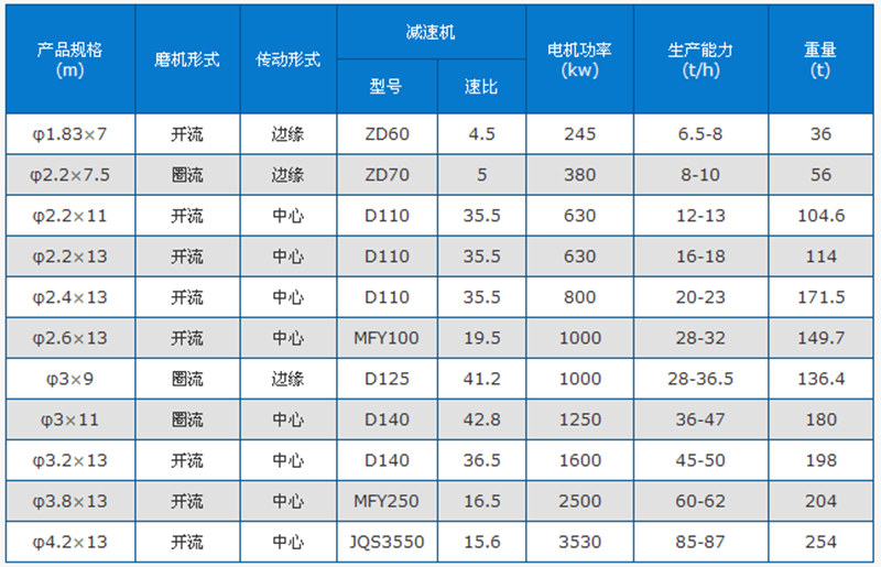 水泥球磨機技術參數